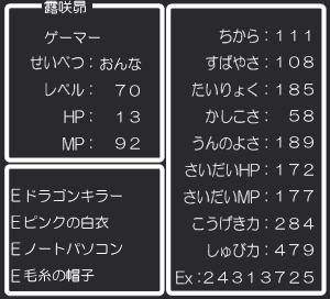 ……ドラクエを知らないからよくわかりませんが、アレってプレイヤースキルが重要なゲームなのかな…と、思いました。まる。